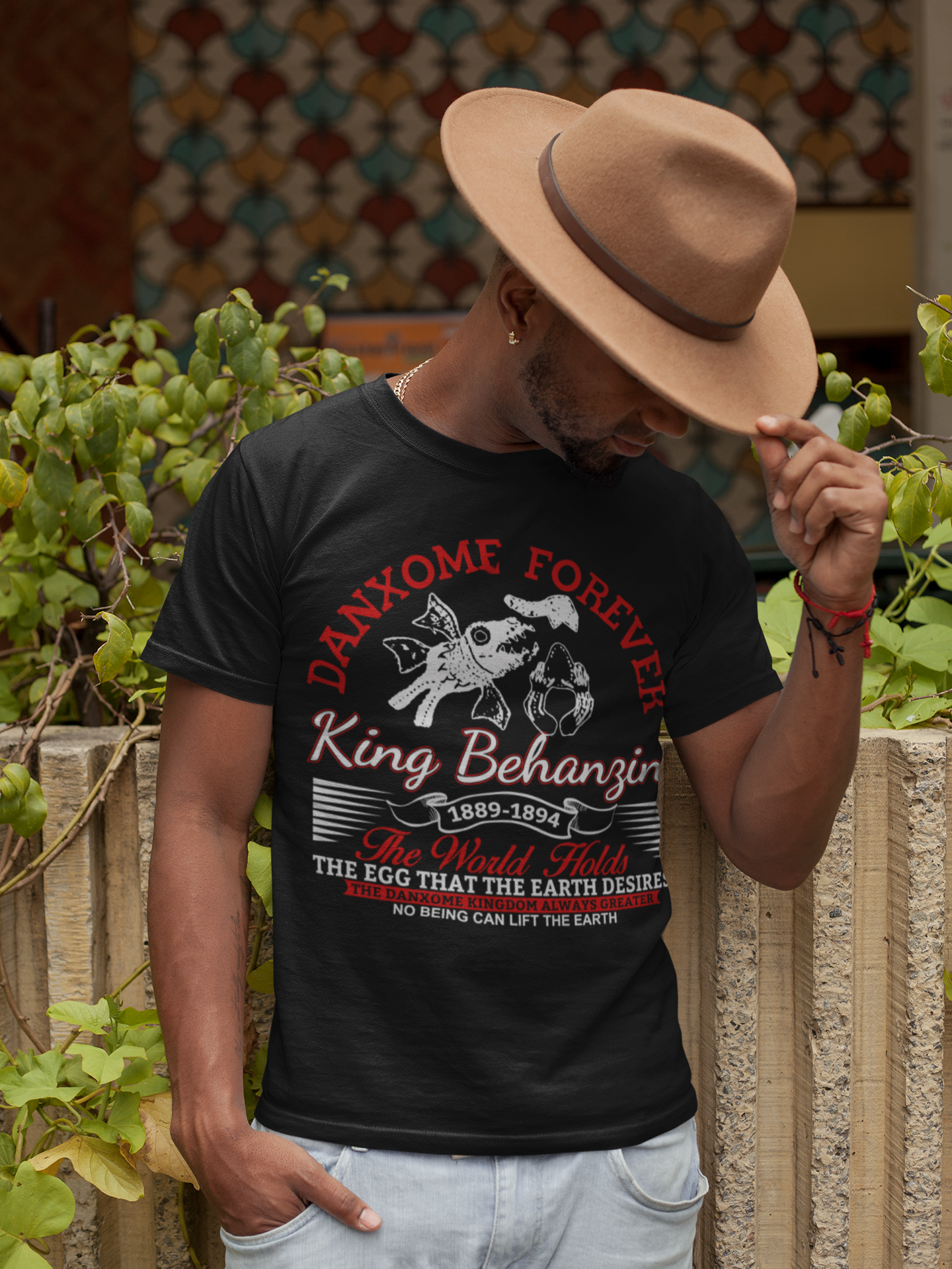 Ce t-shirt noir au design épuré rend hommage à Béhanzin, dernier roi du Dahomey et symbole éternel de courage et de dignité africaine. Une pièce streetwear forte, pour celles et ceux qui marchent fièrement dans les pas de leurs ancêtres.